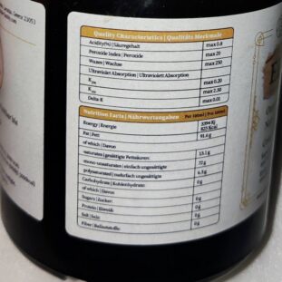 La température de pressage ne dépasse pas 30°C afin que les vitamines et les huiles essentielles, qui donnent à l’huile son goût et son arôme, ne soient pas détruits. L’acidité moyenne très faible de l’huile nous permet de la classer « extra vierge ».
